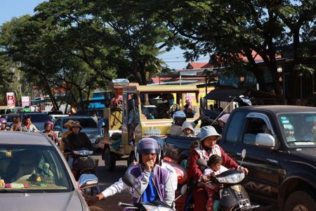 In Cambodia, bottlenecks of trucks and cars formed on country roads and streams of motorcycles and farming vehicles were leaving border areas, local television showed.