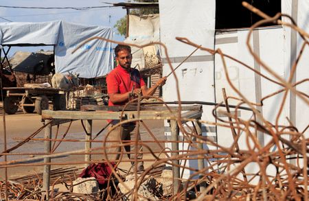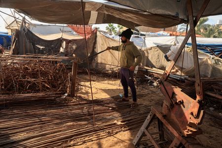 GAZA, Dec 11 (Reuters) – As winter bites in Gaza, displaced Palestinians set out every day to homes destroyed by Israel. There they rip out iron rods from the walls and use them to prop up their flimsy tents or sell to scratch out a living in an enclave that will take years to recover from war.