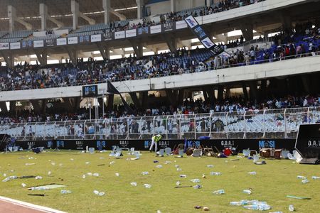 Fans in the Salt Lake stadium in the capital of the Eastern state of West Bengal threw ripped-up seats and other objects onto the field, while several people climbed a fence around the field and hurled objects.
