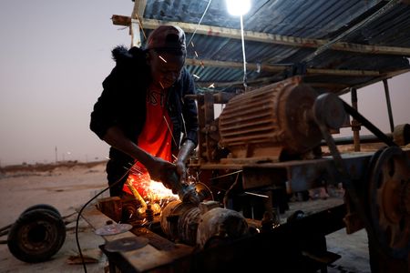 Diallo works 15 days at a time on a site on Nouakchott’s outskirts.