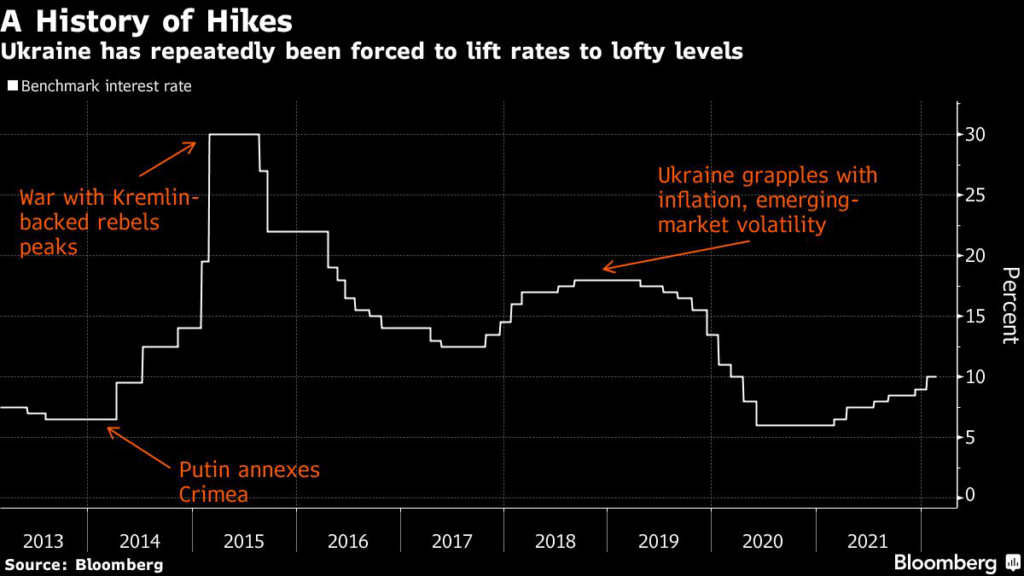 Ukraine’s central bank delayed a scheduled decision on borrowing costs, with the key rate staying at 10% for now.